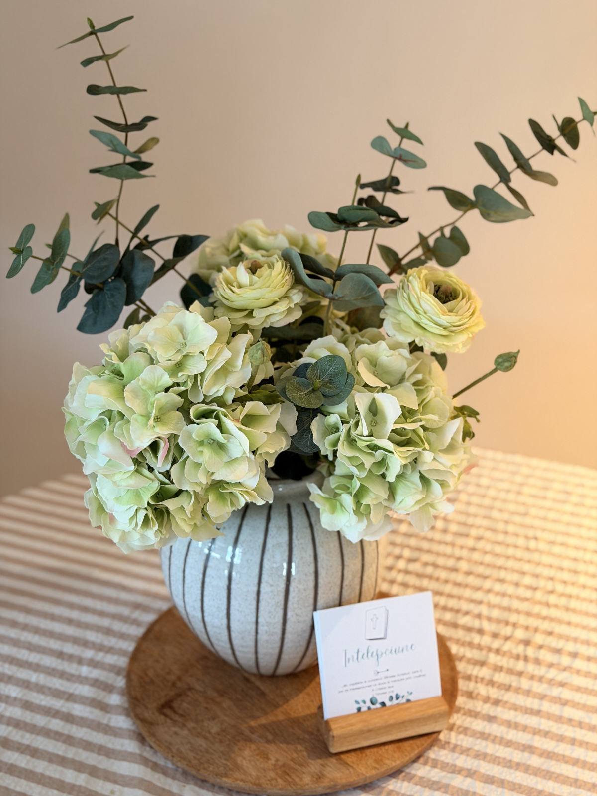 Impreuna cu hortensia verde, sau viburnum verde, cu siguranta vei putea obtine un aranjament care va crea impresia de flori proaspat rupte din gradina.
